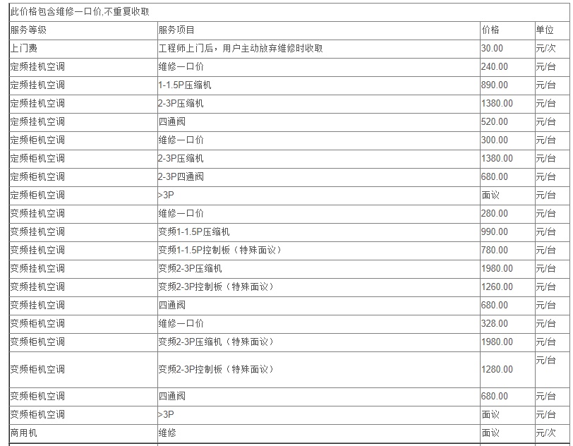 8、更換連接銅管不屬于維修范疇,按安裝價格執(zhí)行。